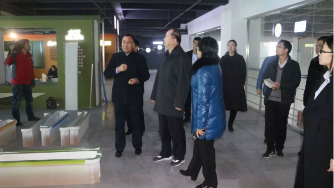 在華興二期整個參觀過程中,邢臺市委書記王會勇首先對公司二期整體設計風格和建筑用材表示肯定;在參觀通道中,王會勇詳細了解了公司目前的企業(yè)文化,并對正在施工中的展廳所富含的企業(yè)文化提出了自己的意見。