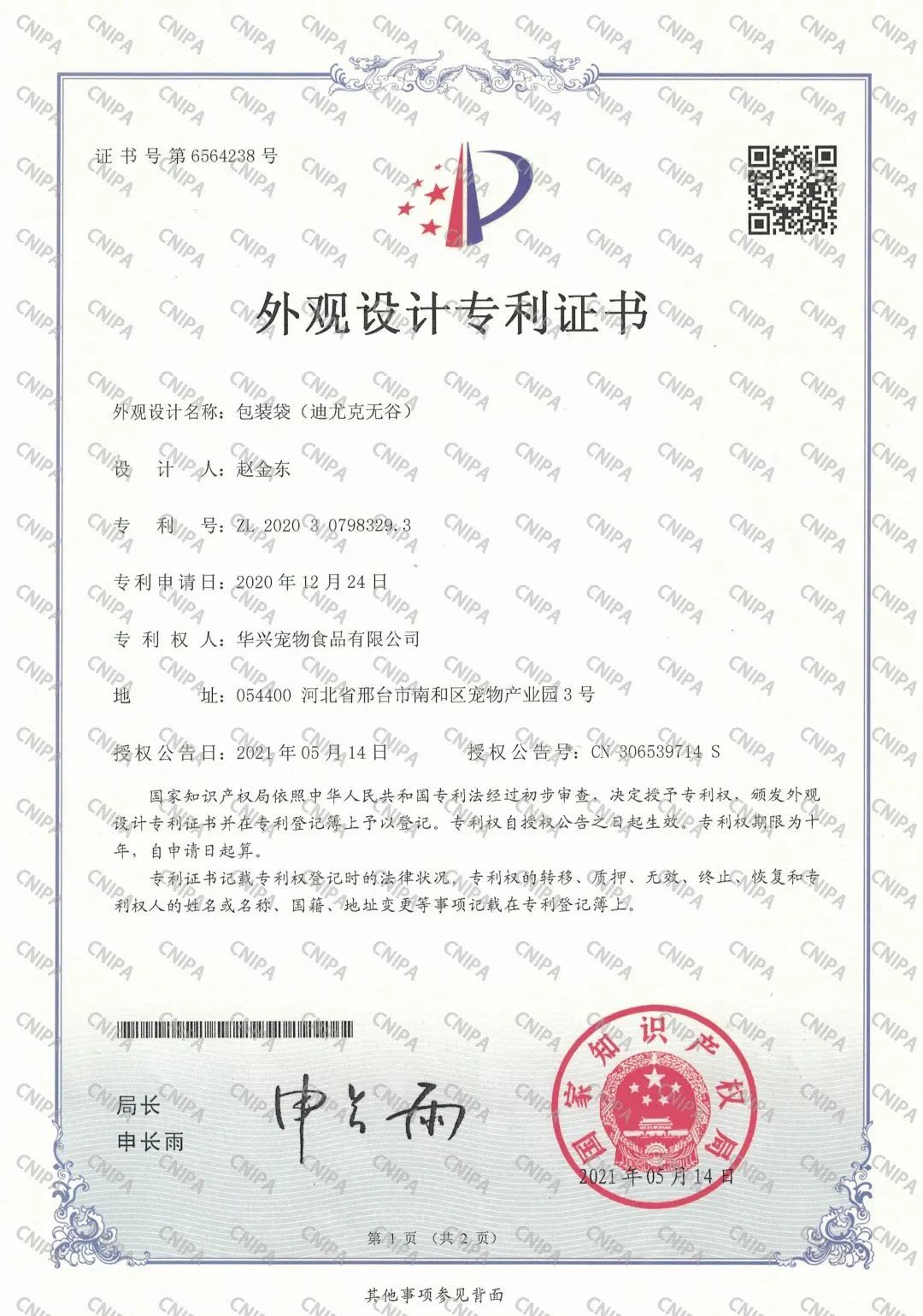 近日,國(guó)家知識(shí)產(chǎn)權(quán)局依照中華人民共和國(guó)專利法經(jīng)過(guò)初步審查,授予迪尤克無(wú)谷包裝袋外觀設(shè)計(jì)專利證書,專利號(hào):ZL 2020 3 0798329.3,并在專利登記薄予以登記。