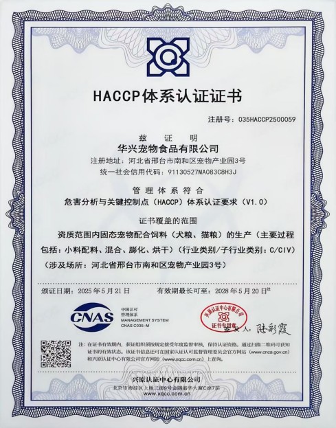 公司通過HACCP體系認(rèn)證